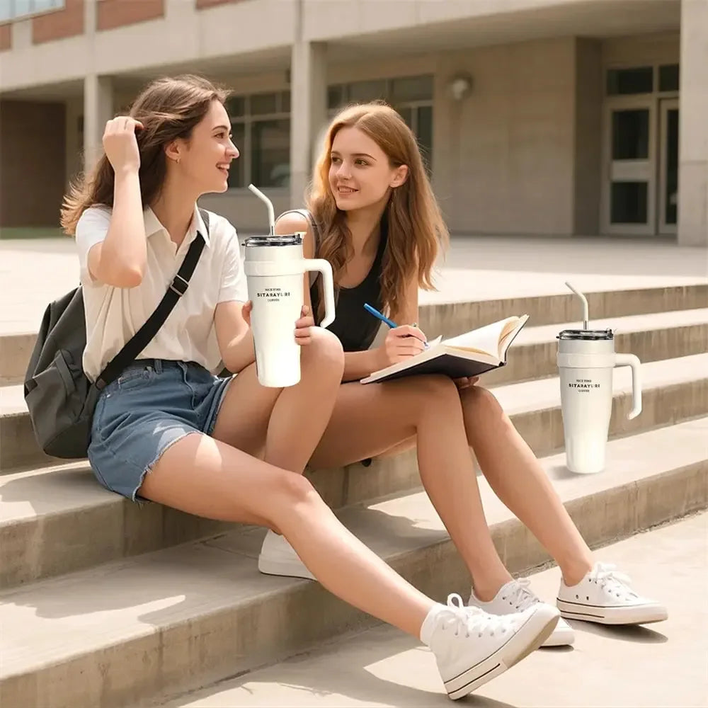 This stainless steel tumbler comes equipped with a sturdy handle and a reusable straw, making it easy to carry and sip on the go. The wide mouth opening allows for easy filling and cleaning, while the BPA-free straw provides a safe drinking experience. Whether you're commuting to work, heading to the gym, or enjoying a picnic, this tumbler is the perfect companion for all occasions. Plus, its spill-resistant lid adds an extra layer of protection against accidents.